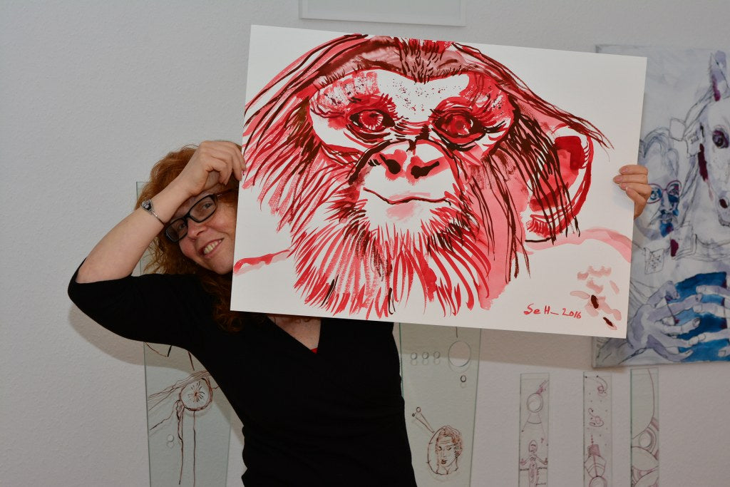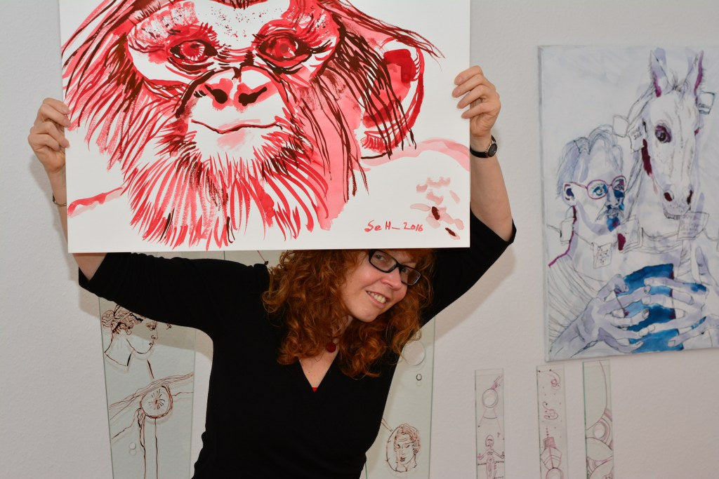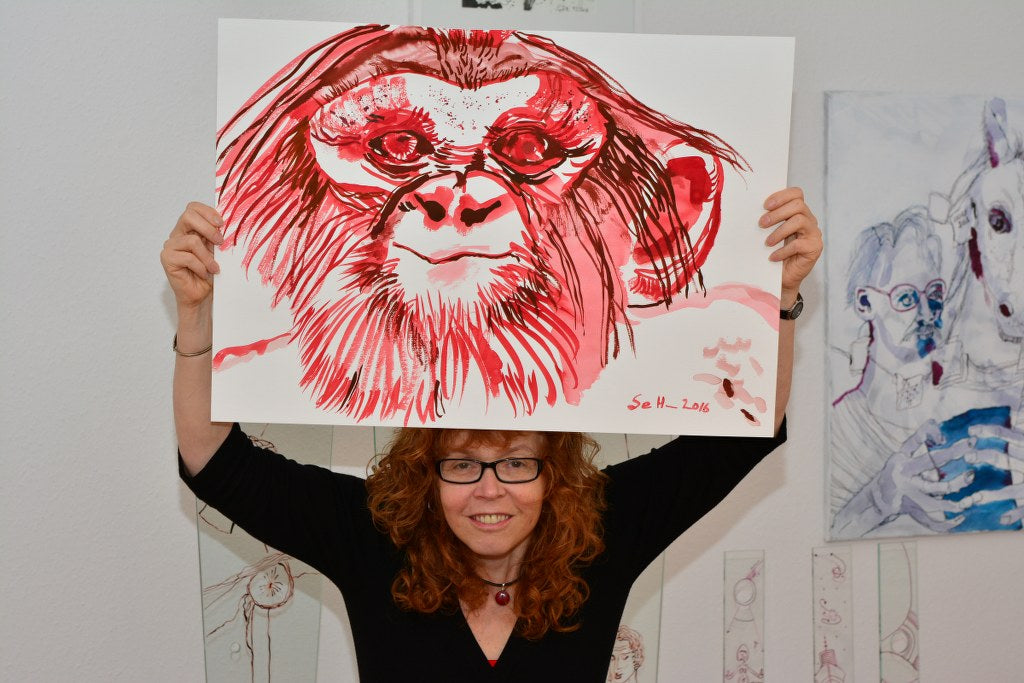 Susanne Haun uses high-quality watercolor cardboard from Hahnemühle and lightfast antique ink from Rohrer for her work.