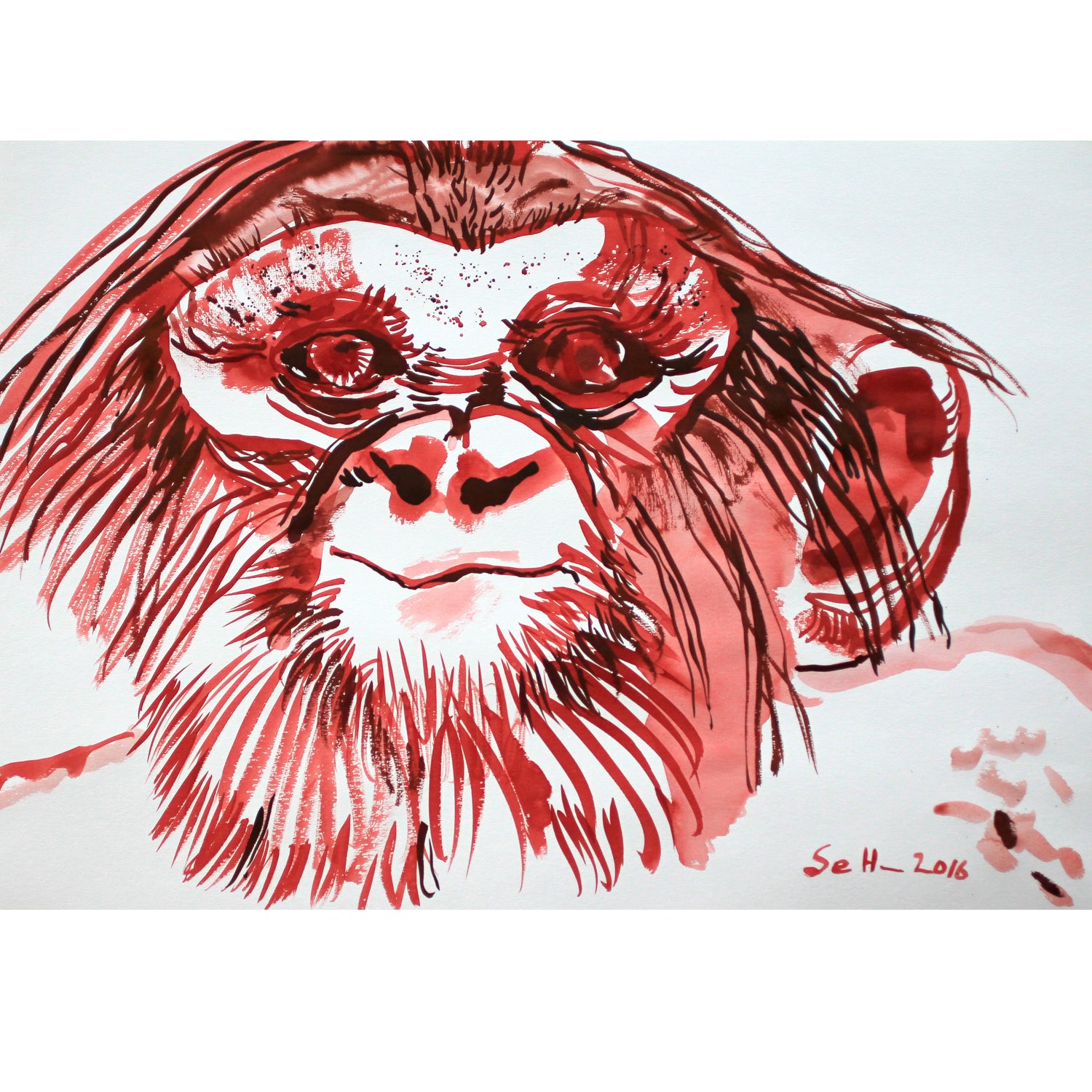The work is framed under glass with a white wooden frame and passepartout in the size 50 x 40 cm.