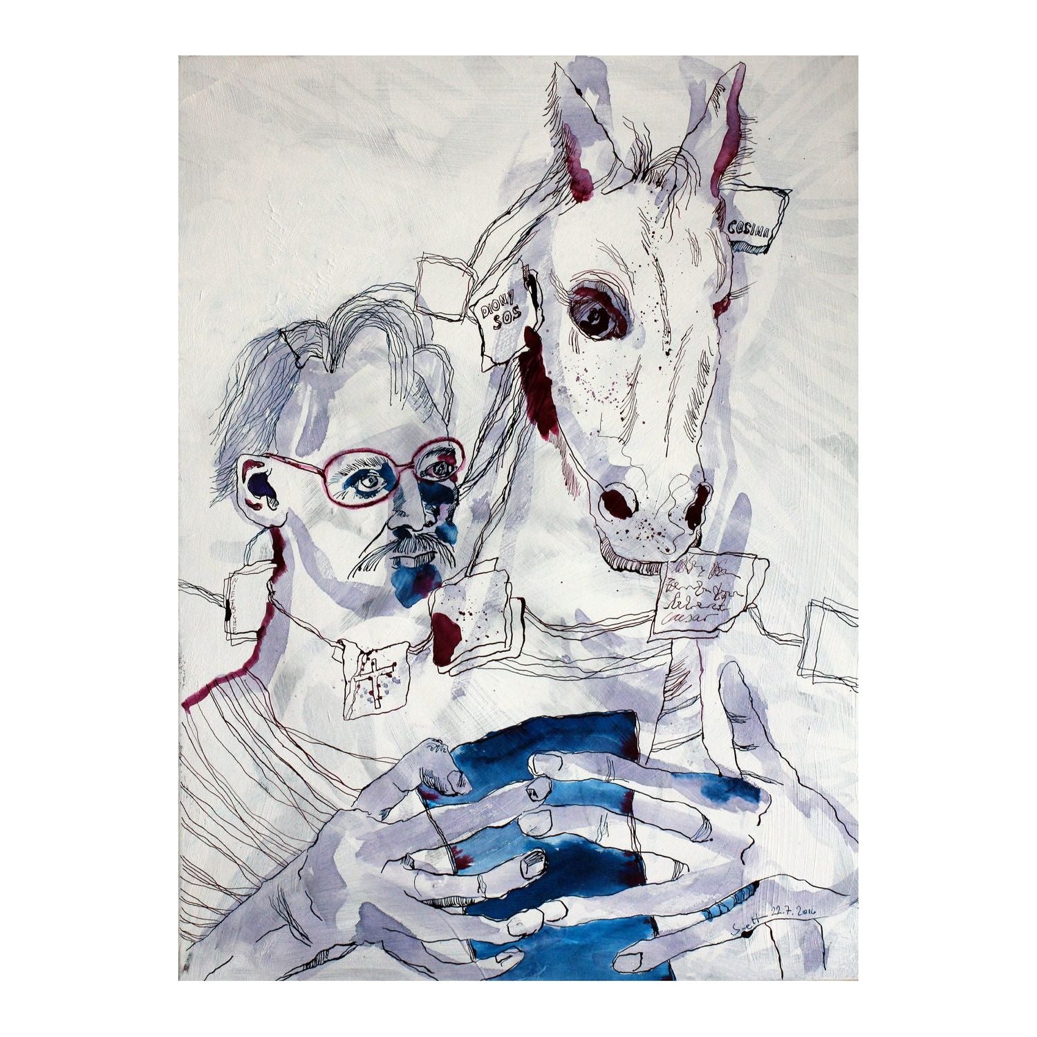Friedrich Nietzsche threw his arms around the neck of a hired horse in tears and refused to let go after he had to watch the driver beat the animal. Nietzsche felt such tremendous pain that he felt compelled to show his affection for the horse. This incident was followed by days of increasing madness - like a man possessed, Nietzsche wrote short and long letters and fragments of thoughts to friends and acquaintances, including to Cosima Wagner, whom he called Ariadne - so-called madness notes, which he signed with 'Dionysus' or 'The Crucified' or, for example, with 'Nietzsche Caesar'.