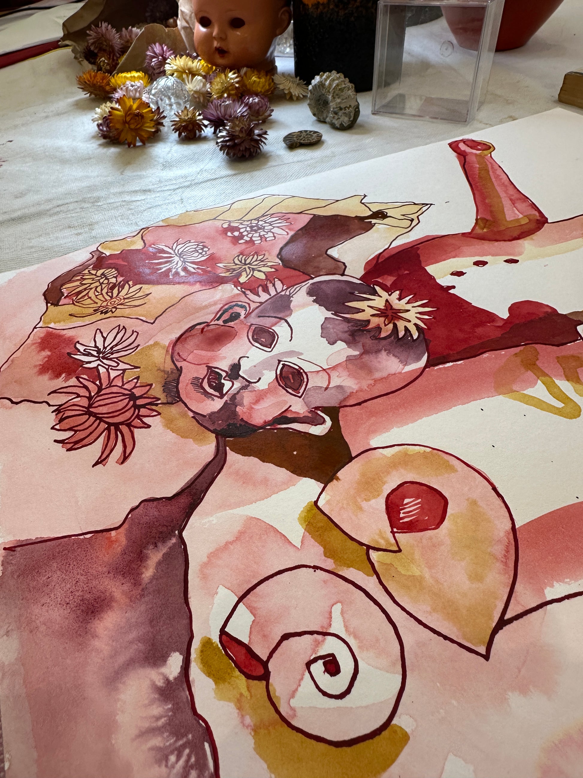 Susanne Haun uses high-quality watercolor cardboard from Hahnemühle and lightfast antique ink from Rohrer for her works of art.