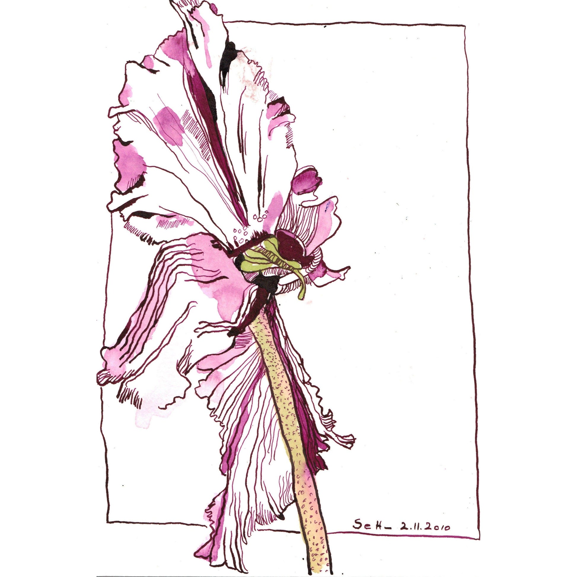 Susanne Haun lets the flower of a violet dance in her drawing. She looks at the flower very closely in order to be able to bring it to life with just a few strokes.