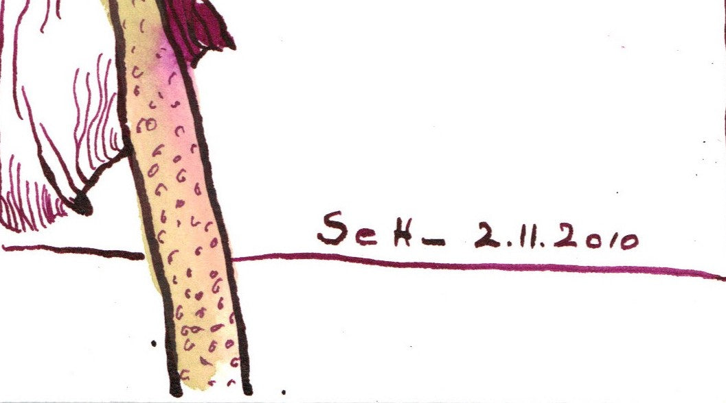 The drawing is made on Hahnemühle Burgundy watercolor cardboard, 250g/m² thick, with Rohrer antique ink.