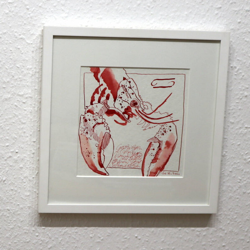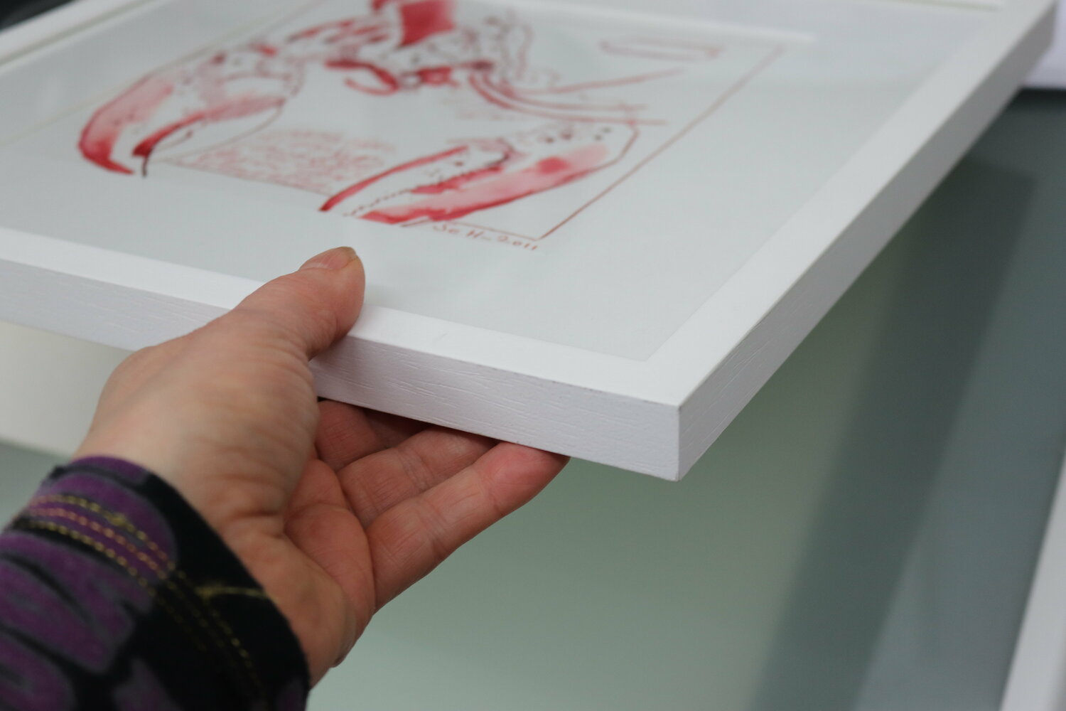 The drawing is framed in a white wooden frame (passepartout) measuring 30 x 30 cm and can be hung up immediately.