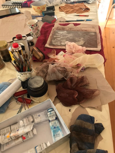 Susanne Haun spielt beim Drucken ihrer Radierungen mit den Farben. So kommt es, dass jede der gedruckten Radierungen von einer Platte ein Unikat ist.