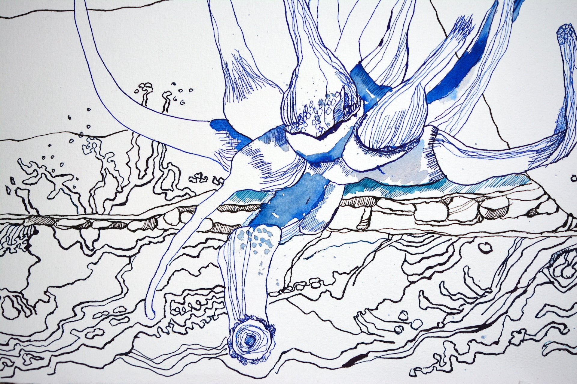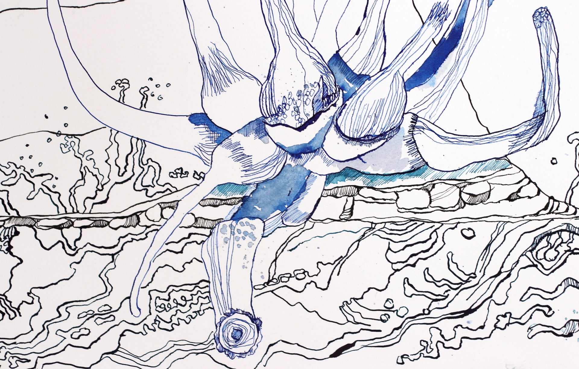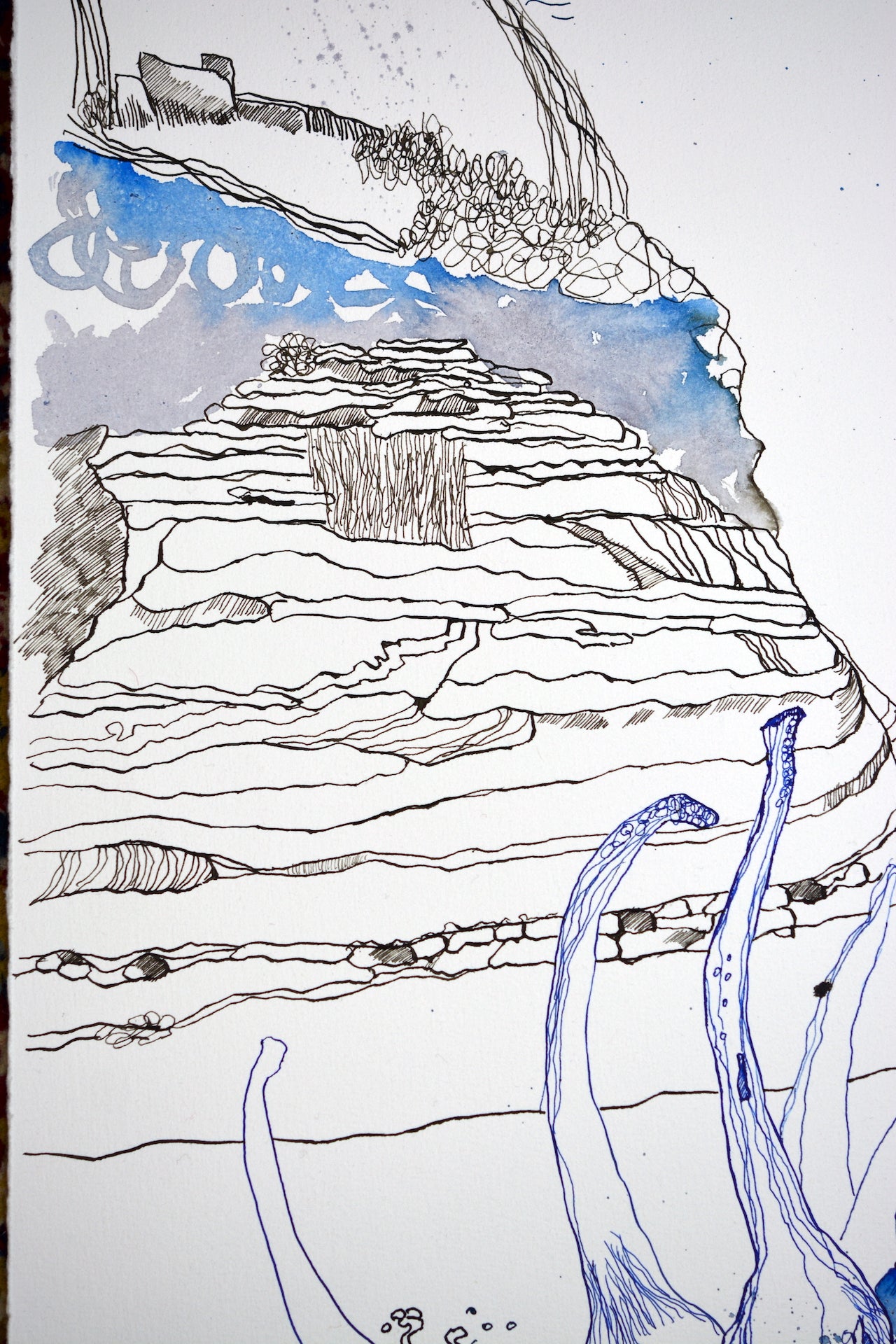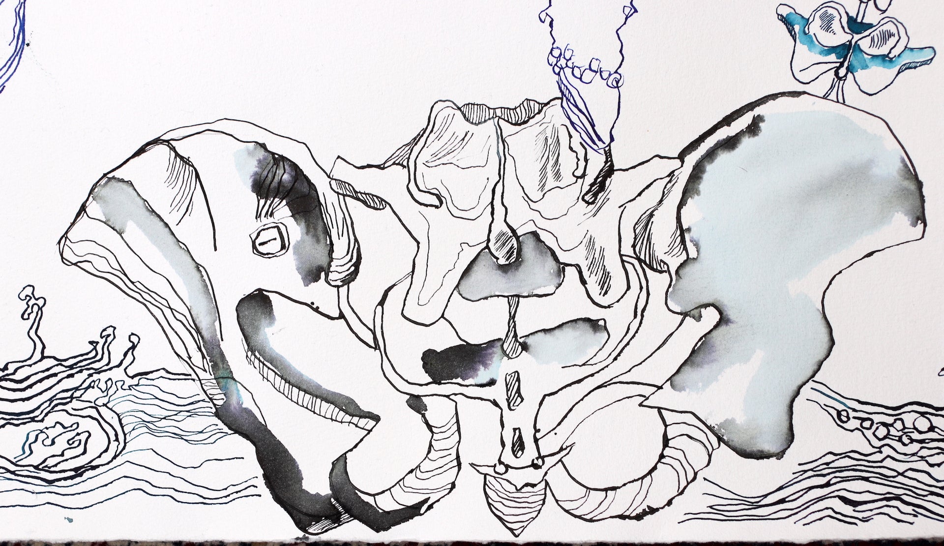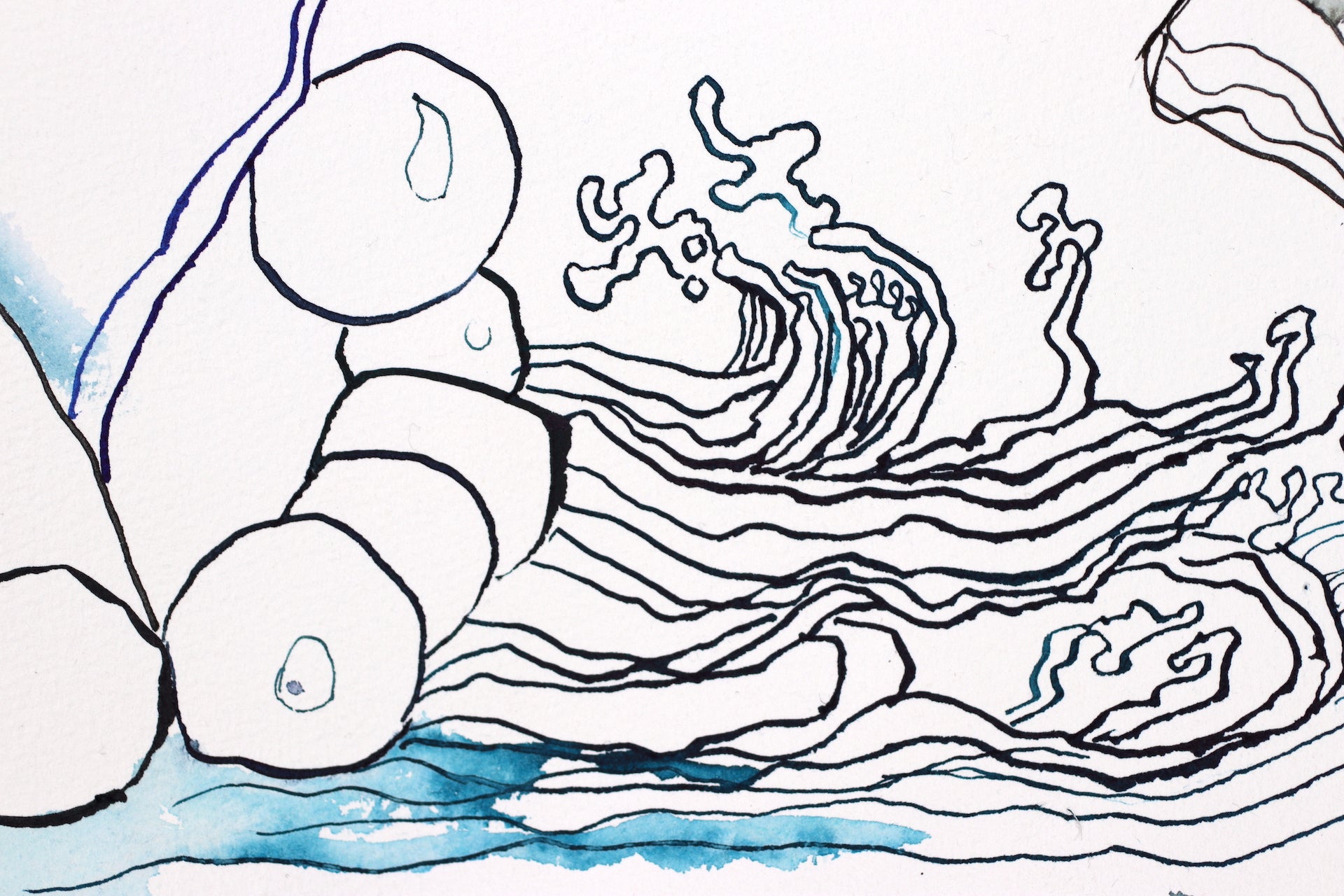In ihrem Werk erforscht Susanne Haun das Zusammenspiel von Leben und Vergänglichkeit mit lebhaften und poetischen Tuschelinien. Es ist eine Reise durch das Surreale und Symbolische, wo Figuren und Elemente in einer metaphysischen Komposition verschmelzen. Tiefgehende Emotionen und Reflexionen des Seins fließen hier zusammen und laden den Betrachter ein, über unsere Existenz und das, was darüber hinausgeht, nachzudenken: Die Welt und der Mensch verändern sich. Von der Blüte der Jugend bis zum Alter scheint das Leben durch unsere Finger zu verrinnen. Der Spiegel zeigt uns unbarmherzig die Veränderungen an unserem Körper. Eben schauen wir mit der Dynamik der Jugend und im nächsten Augenblick mit der Weisheit des Alters in die Landschaft. Haun stellt diese Veränderungen unbarmherzig mit Tuscheliinien auf handgeschöpften Büttenpapier von Hahnemühle dar. Als Modell hat Haun ihr eigenes Gesicht verwendet.