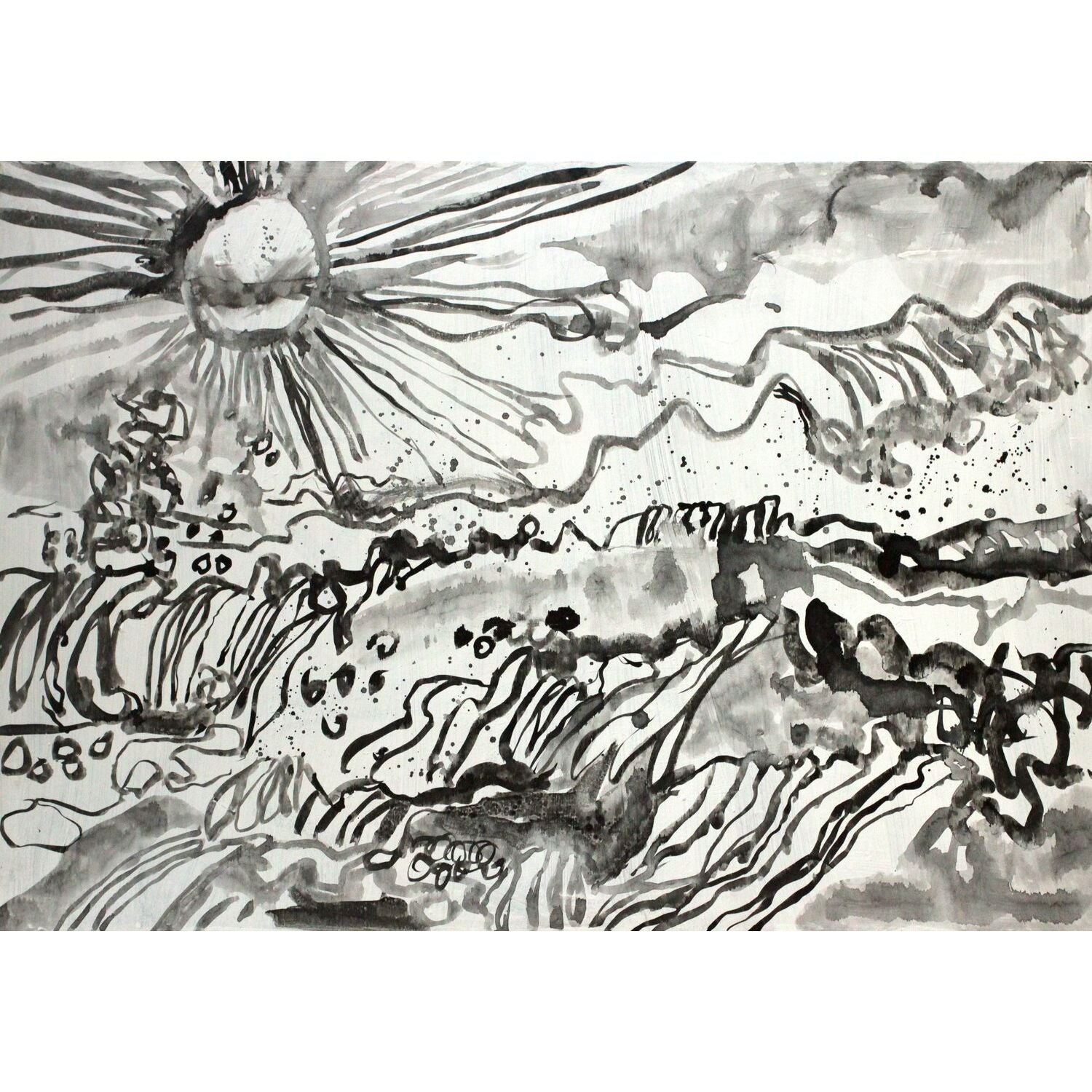 Die dargestellte raue See beherbergt laut Susanne Haun Dämonen, die das Meer aufwühlen und gegen die grell scheinende Sonne konkurieren. Obwohl das Gemälde nur aus Schwarz- und Grautönen sowie Variationen aus Weiss besteht, scheint es sonnig zu leuchten.