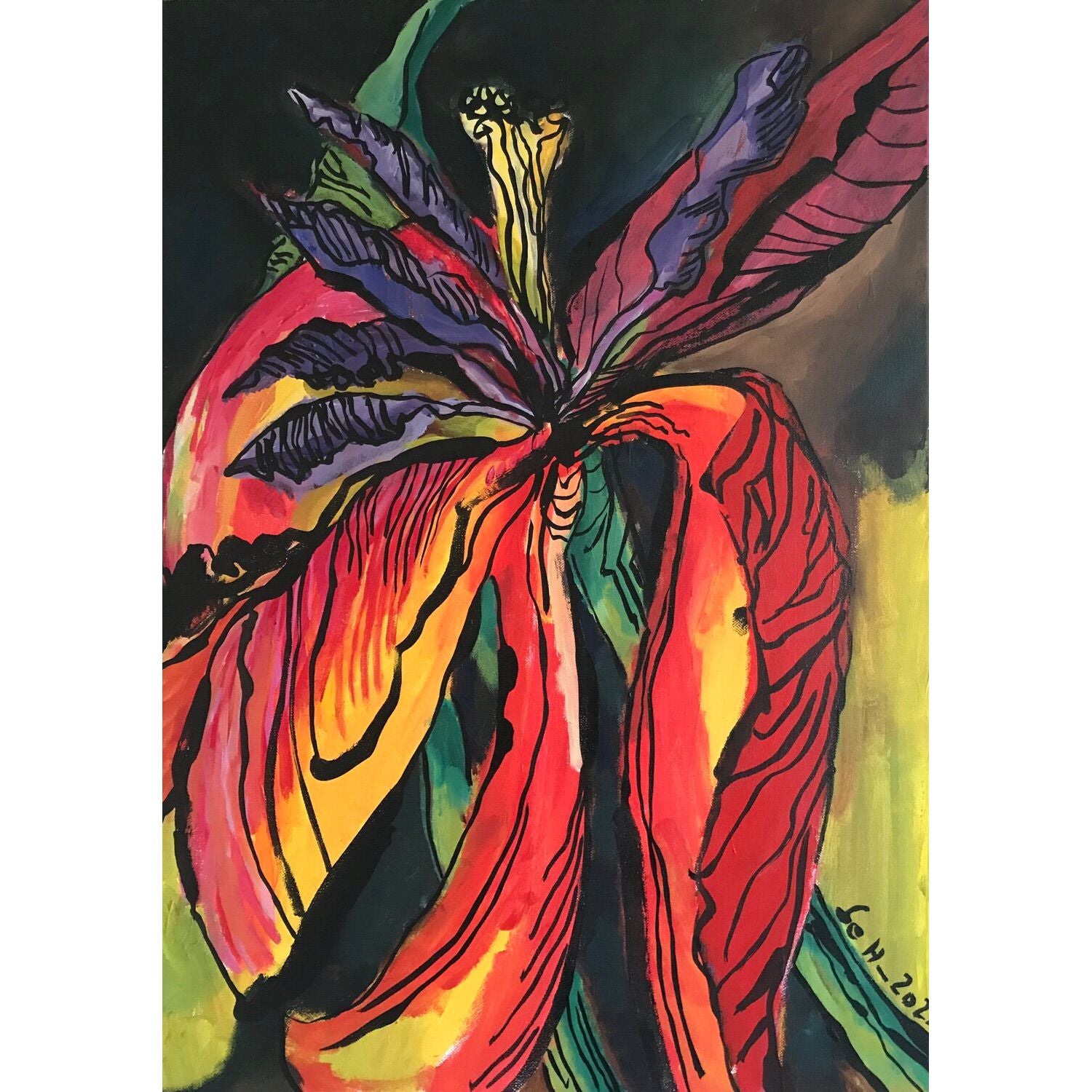 Flammende Tulpe aus dem Dunklen, 2022