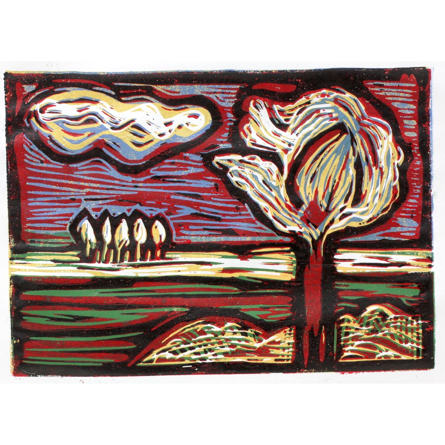 Fontane lief durch die schöne Landschaft der Mark Brandenburg und schilderte diese in seinen Büchern begeistert. Die Künstlerin Susanne Haun hält die Eindrücke in farbenfrohen Linolschnitten fest , die sie nach der Lektüre des Buches gewonnen hat. Haun arbeitet nach dem Prinzip der verlorenen Form, die schon Picasso anwandte und reibt die Farbe mit einer Bürste in das Papier. Dadurch wird die Farbe untypisch für Linolschnitt in das Papier gepresst, wo keine Farbe auf das hochwertiges Sumie-e Papier von Hahnemühle eingerieben wird, wirft das Papier deshalb Falten und belebt das Motiv.
