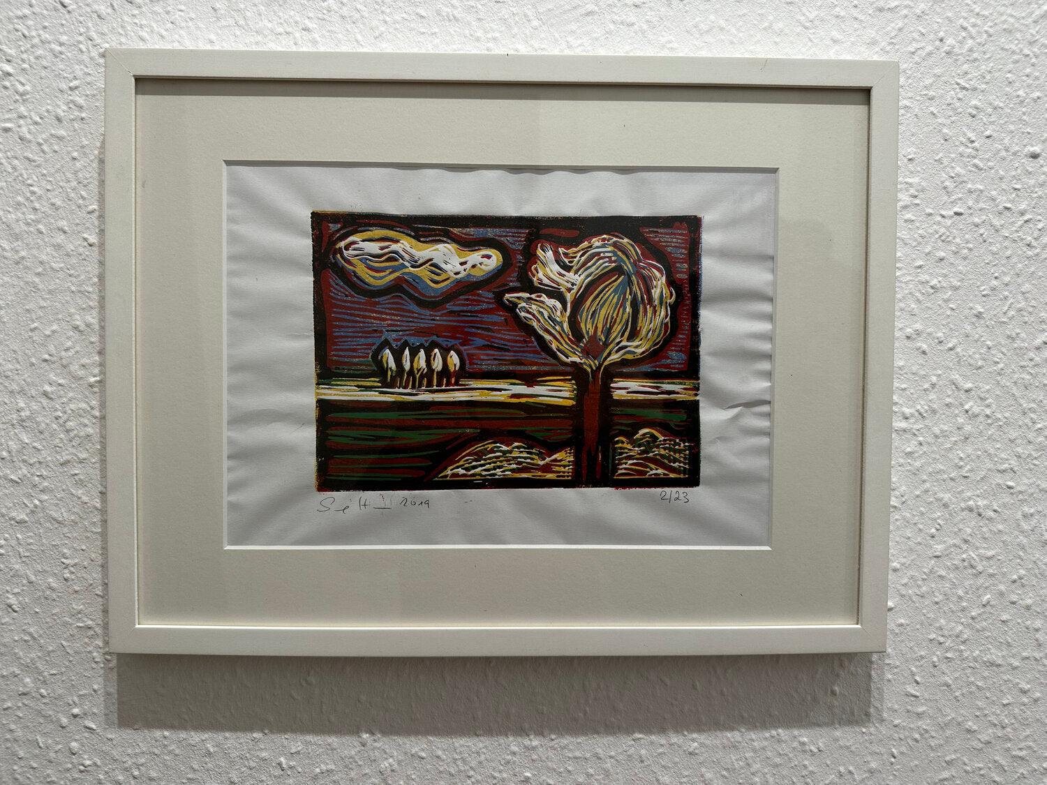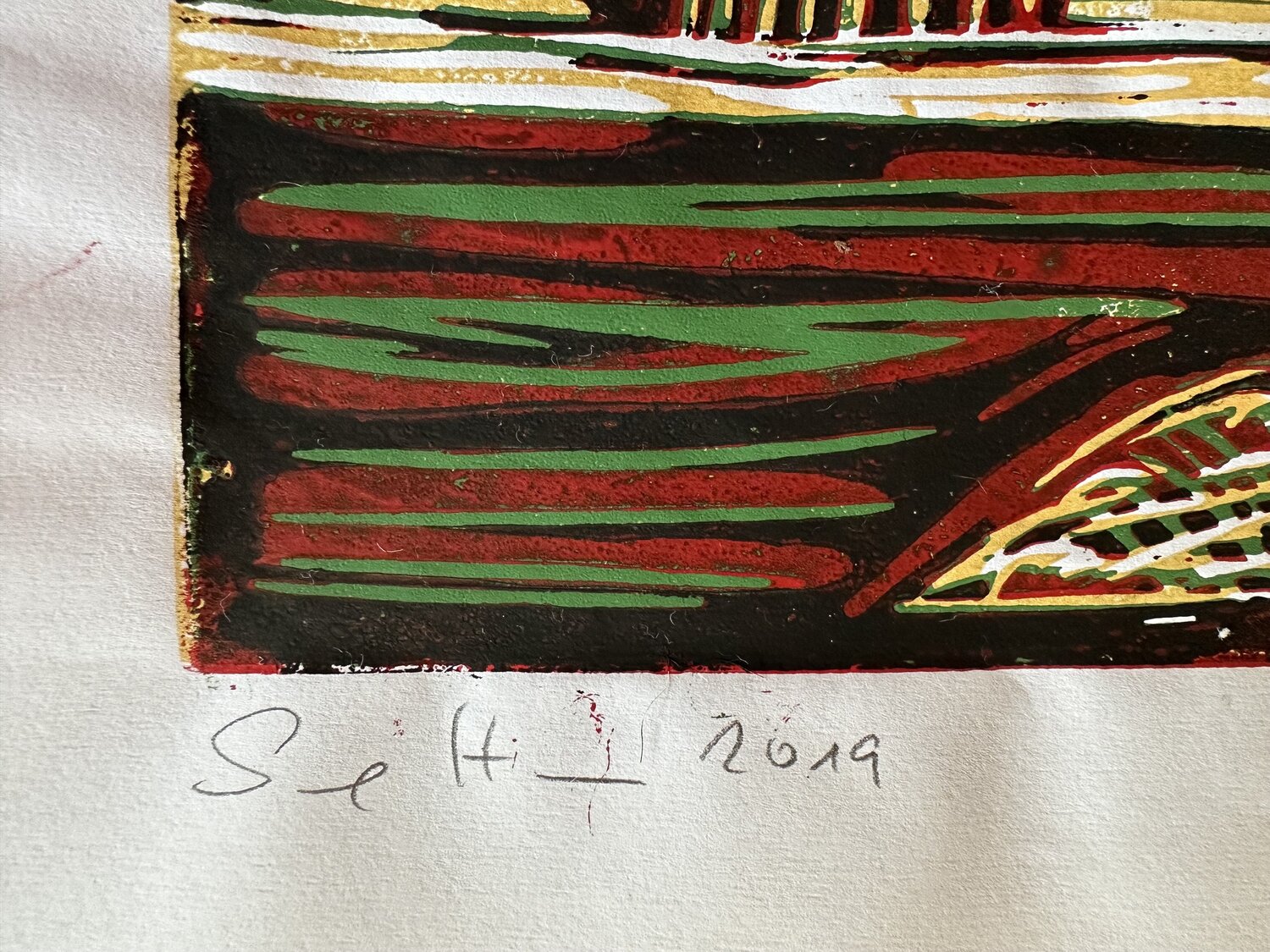 Aufgrund der Technik und der unterschiedlichen Farben je Druckschritt kann man von jedem der 23 Drucke, die aus dieser Platte entstanden sind von einem Unikat-Druck sprechen. Nichtsdestotrotz numeriert Haun die Blätter, um sie identifizierbar zu machen. Hier wird der 2. Unikatdruck angeboten.