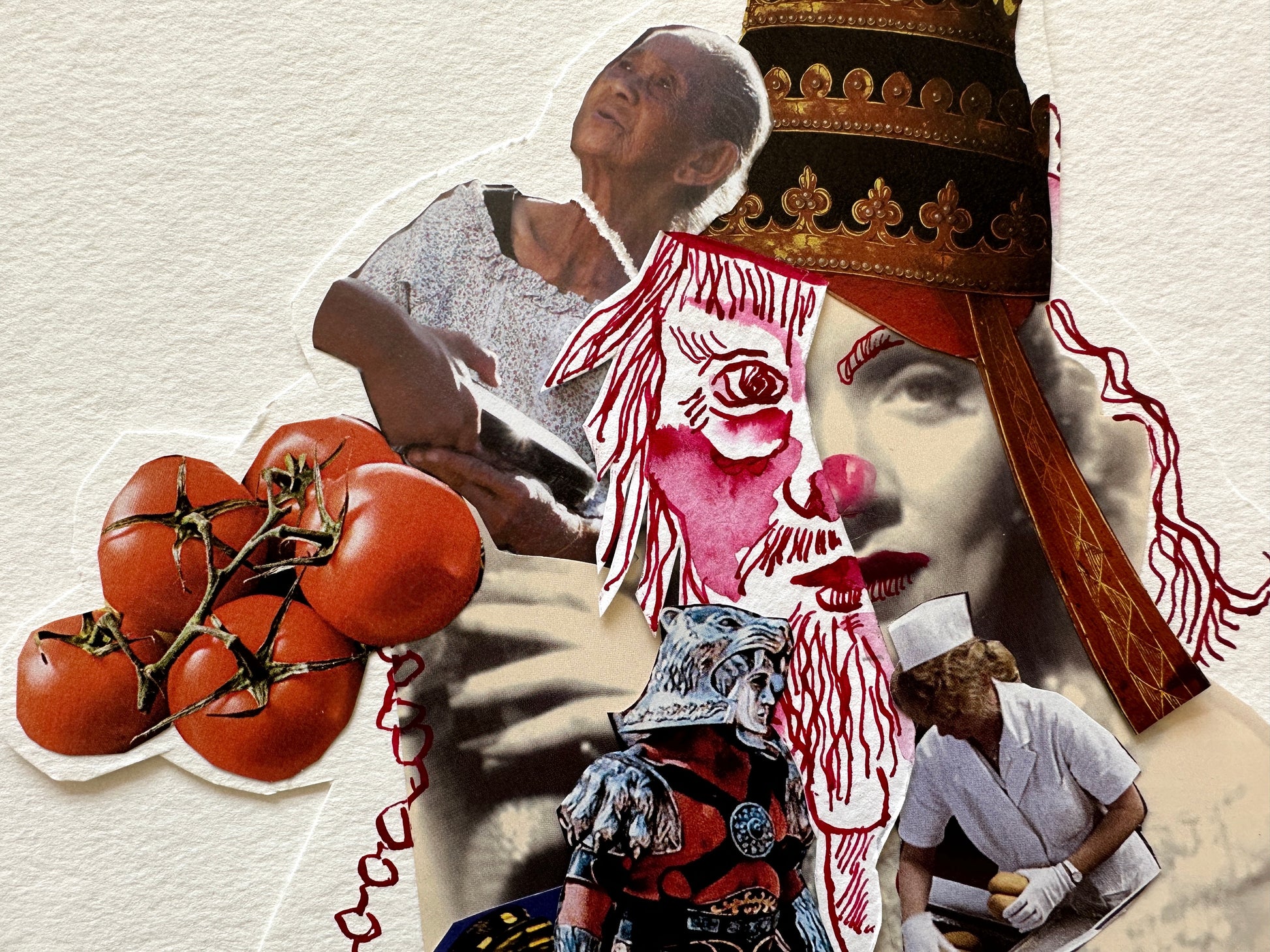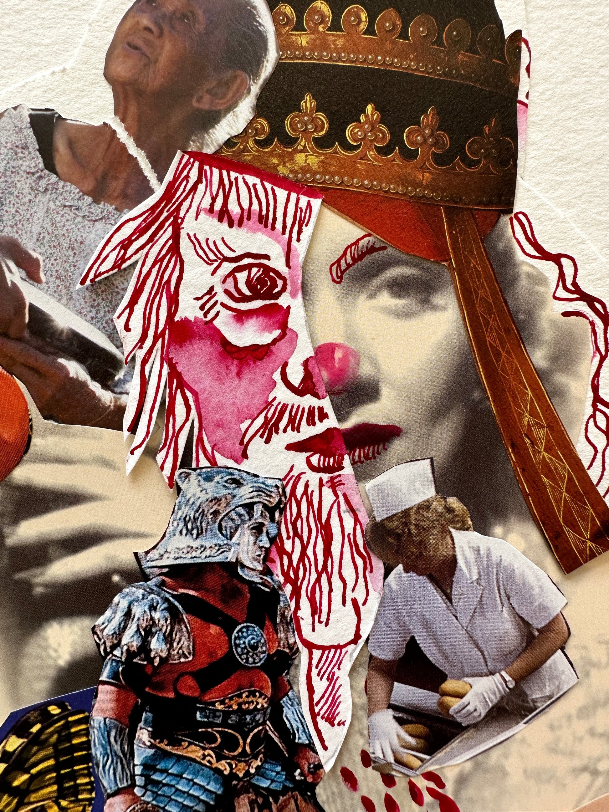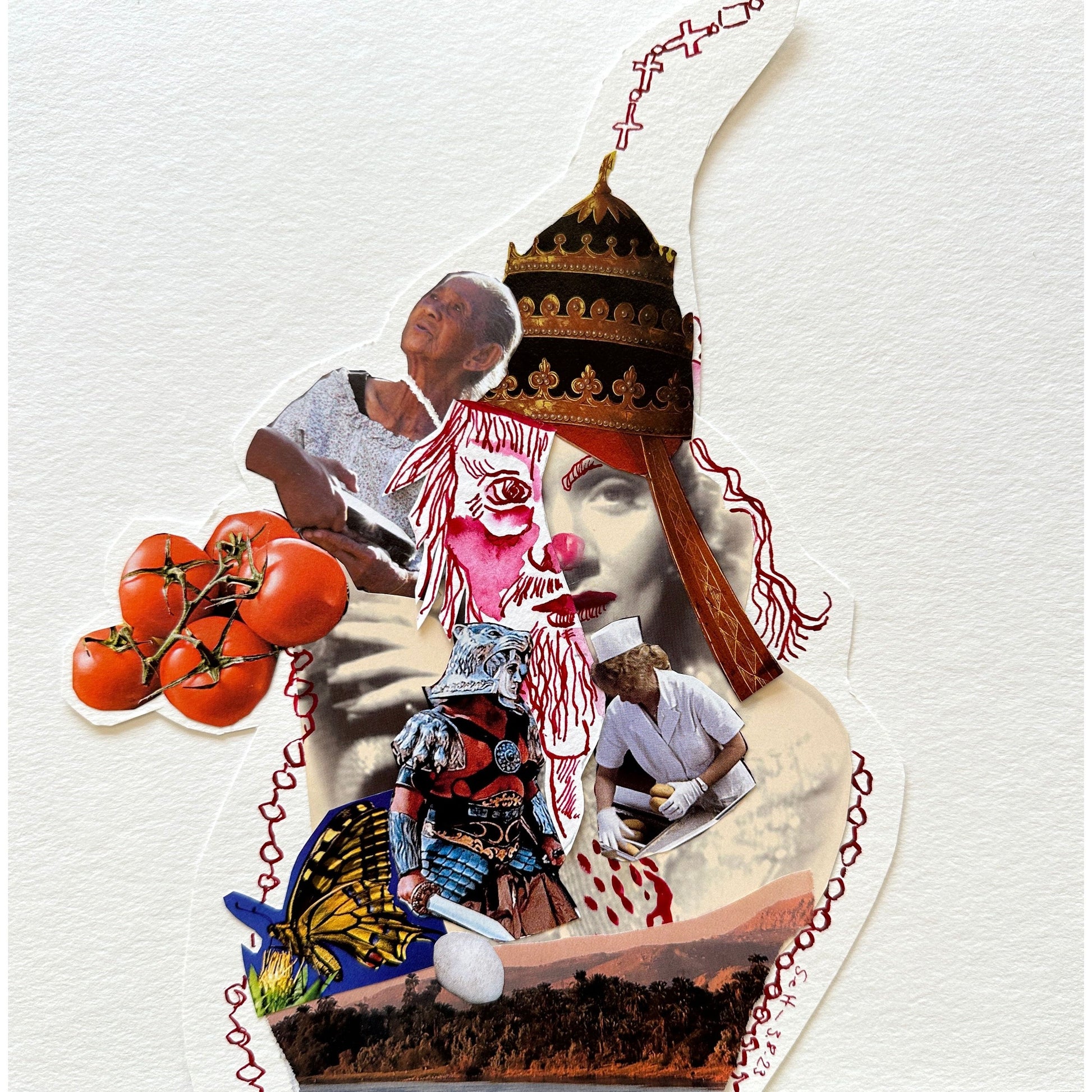 “(…) ich [bin] schrecklich gierig; ich möchte vom Leben alles, ich möchte eine Frau, aber auch ein Mann sein ..." schrieb die französische Schriftstellerin SIMONE DE BEAUVOIR. Mit diesen Gedanken im Kopf zeichnete Susanne Haun. Diese Zeichnung zerschnitt sie und kombinierte sie mit Schnipseln aus Illustrierten.