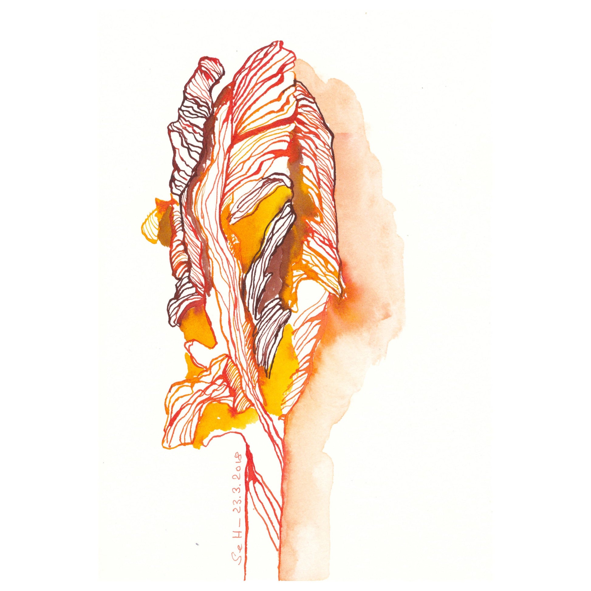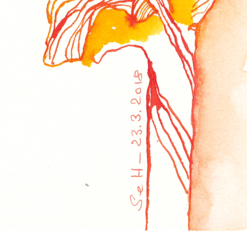 Die Zeichnung ist auf Hahnemühle Aquarellkarton Burgund der Stärke 250g/qm mit Antik Tusche von Rohrer gezeichnet.