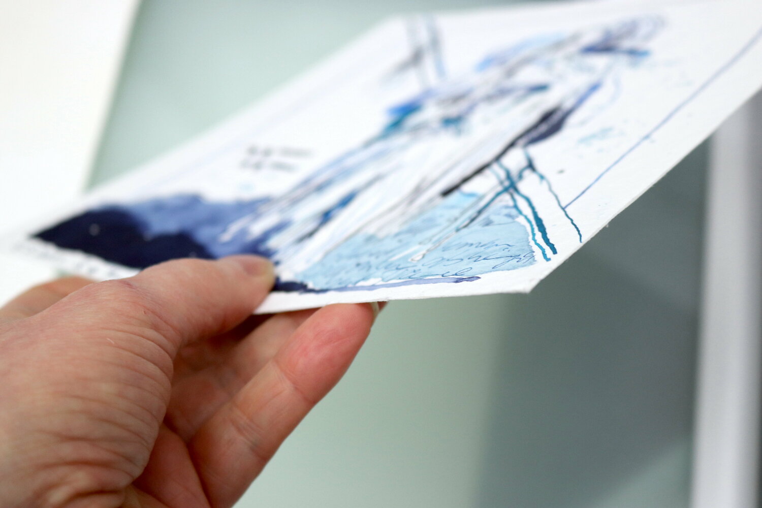 Susanne Haun verwendet hochwertigen Aquarellkarton von Hahnemühle und lichtechte Tusche von Rohrer.