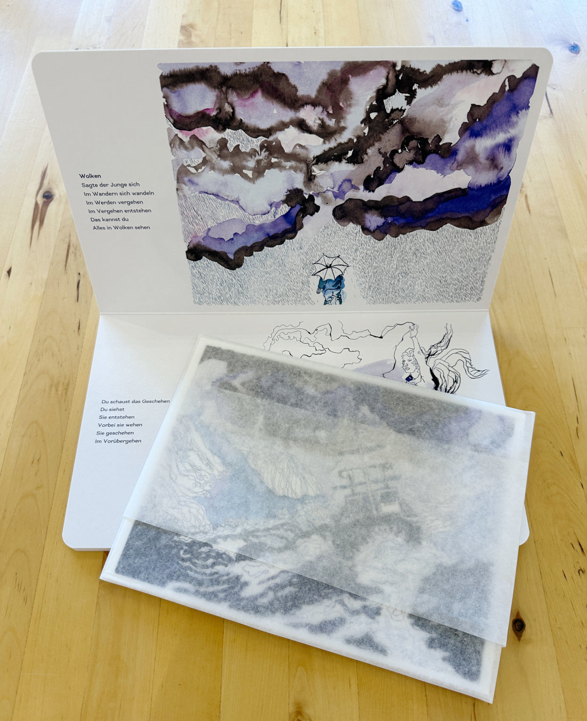 In Lyrik und Tuschezeichnungen laden Gerd Knappe und Susanne Haun uns ein, das Wogen und Wandeln über unseren Köpfen zu erkunden. Was könnt ihr entdecken?